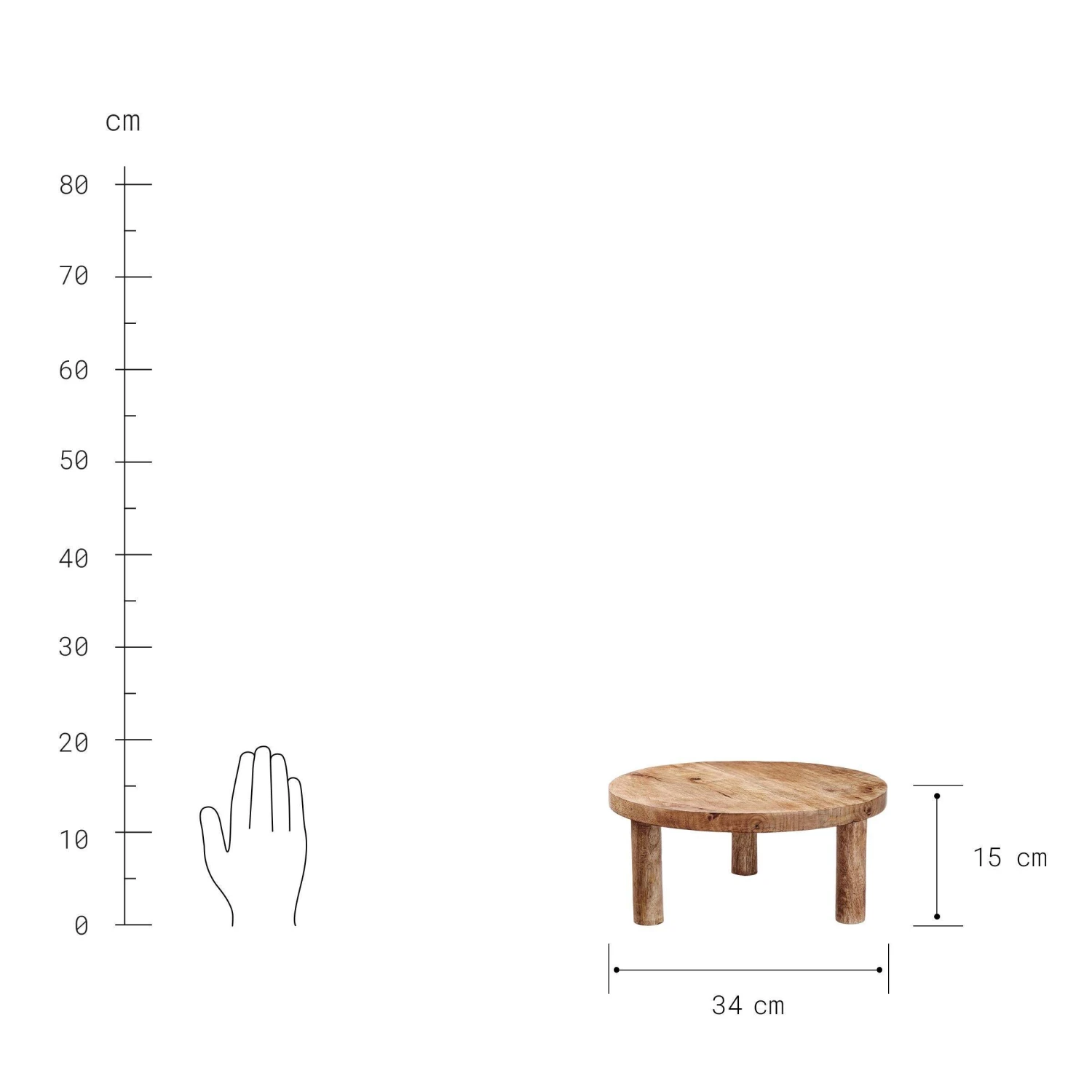 3-D-Inszenierungen sind der Trend für den stilvoll gedeckten Tisch – und gelingen wunderbar mit dem Mesa Podest. Dieses runde, dreibeinige Podest aus braunem Mangoholz wird einfach auf den Tisch gestellt und dient dort als eine Art Bühne. Hervorgehoben von Tellern, Gläsern und Co. lassen sich so z.B. Tapas servieren oder Topfpflanzen platzieren. Bei Hochzeiten und Geburtstagen kann die Torte auf dem Mesa Podest thronen, oder Sie nutzen es für eine opulente Dekoration mit Blumen, Windlichtern oder Dekofiguren.