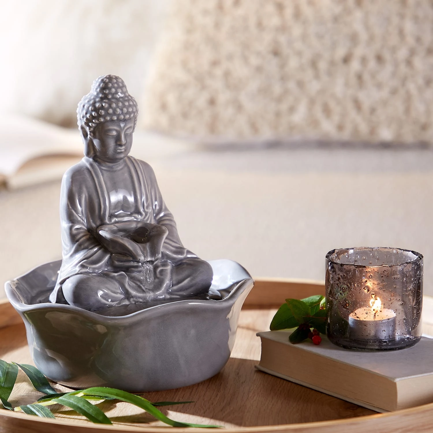– FLEXIBEL GESTALTEN: Buddha-Figur separat entnehmbar – kombiniere den Brunnen mit Kerzen, Vasen oder Pflanzen für individuelle Arrangements.
